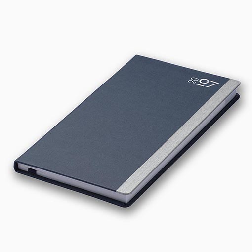 The Duo Pocket Diary with white pages has a stylish, modern look, with a cover in two contrasting colours and a semi-reverted year date blocked in silver foil. This 13-month diary has a week to view design. It is thread sewn for extra strength and has a blue ribbon marker for easy page location.