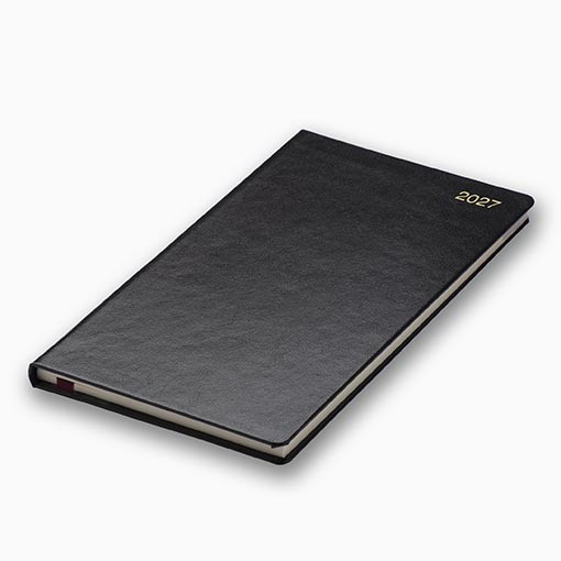 This practical pocket diary also covers 13 months of the year to help you plan ahead. It is thread sewn for durability and has a burgundy ribbon marker. Available colours are black, blue or burgundy.